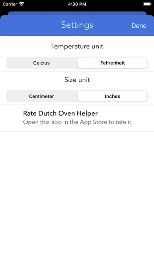 You can also change from Fahrenheit to Celsius and from Inches to Centimeters.
