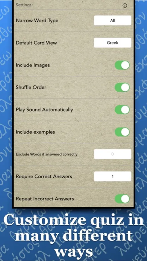 Tailor quizzes to your needs, including as much or as little of the extra content as you want. Or sit back and study in slideshow mode ! Either way, you'll be acing those vocab tests in no time.