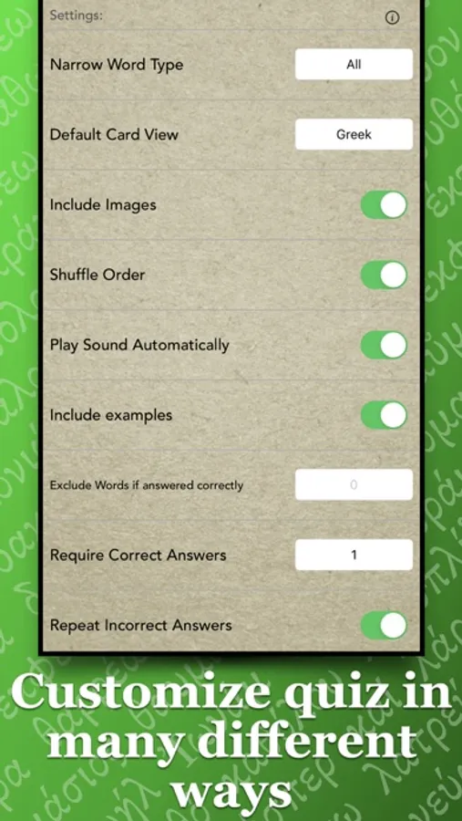 Tailor quizzes to your needs, including as much or as little of the multimedia content as you want. Or sit back and study in slideshow mode, even while driving! Either way, you'll be acing those vocab tests in no time.
