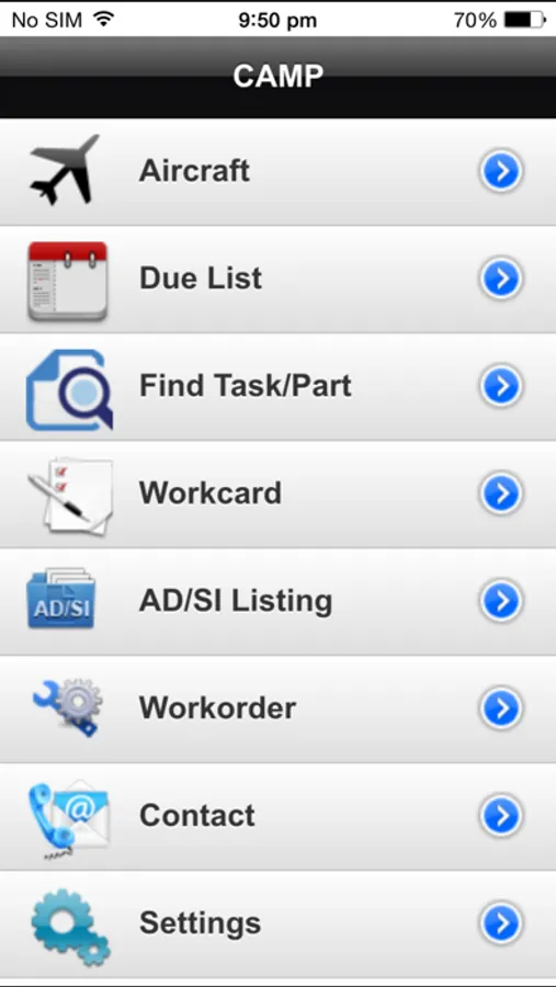 CAMP MTX touch screen compatible application intended to provide flight department personnel with instant access to maintenance information from any location at any time.