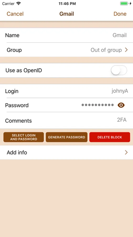 Do you use just several logins and passwords for all your accounts too? Well, we know it's not that secure but it remains a common practice. Segreto is designed for those users. With this app you aren't to store login and pass for each site, e-mail, account, etc. You just need to create pairs of logins and passwords. Then you can simply connect them to necessary records where this login and password are used. For example, you create pair that includes login "Mike" and password "726371" and then stick it to records (i.e. Amazon, Apple Store and other sites where you use these login&pass). Thus, you will always see how many sites and services are associated with certain login or password.