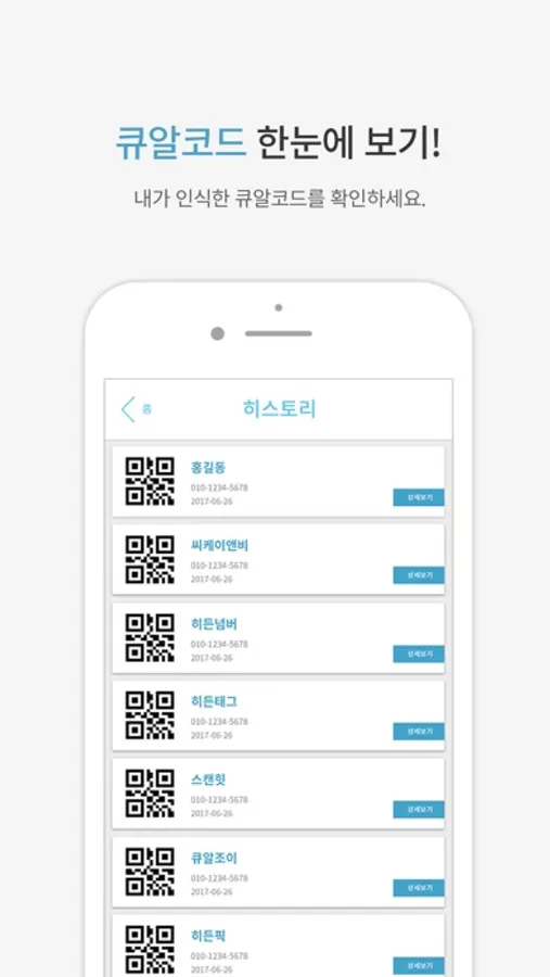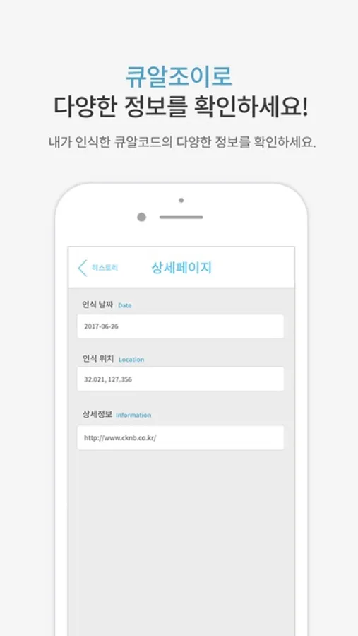 과거에 인식했던 QR의 정보가 갑자기 궁금해도 다시 그 QR코드를 찾아 인식할 필요 없이 간단하게 히스토리 상세페이지에서 확인 가능합니다.