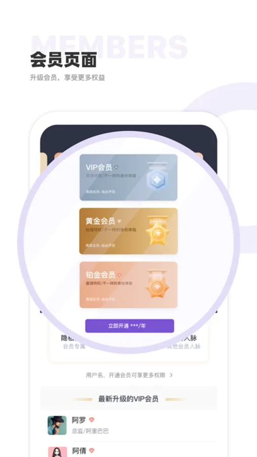 可以在应用内购买和聊会员服务有三种应用内的付费项目:
