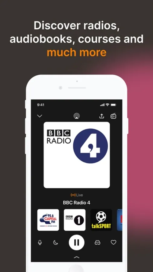 You can also listen live to thousands of stations like: BBC Radio 2, BBC Radio 4, BBC Radio 1, Heart 106.2, 95.8 Capital FM, BBC Radio 5 live, Smooth FM, Classic FM, KISS, Magic 105.4, BBC London, BBC Asian Network, Choice FM, LBC, XFM,