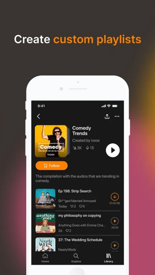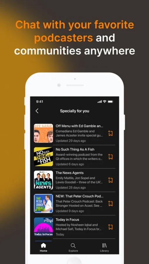 - Follow your favourite podcasts: Choose whether to subscribe, get notifications or download them automatically.