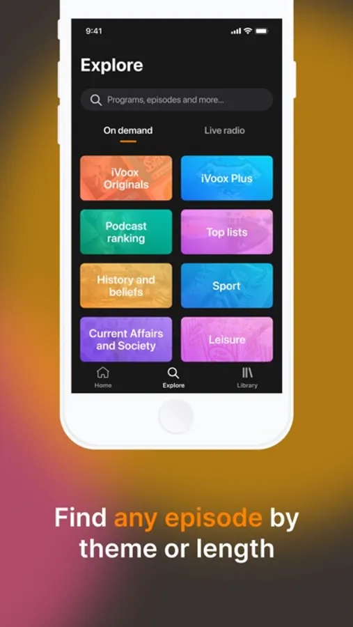 - Access a wide selection of podcasts, radio shows and tracks, all carefully categorised and ordered.