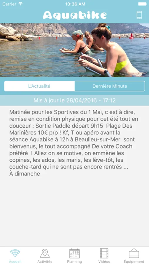 L’application « Aquabike » by Fl’Eau est faite pour vous faciliter votre pratique de l’Aquabiking. En effet, dans votre poche, recevez ou consultez les informations quotidiennes où que vous soyez et à n’importe quel moment de la journée.