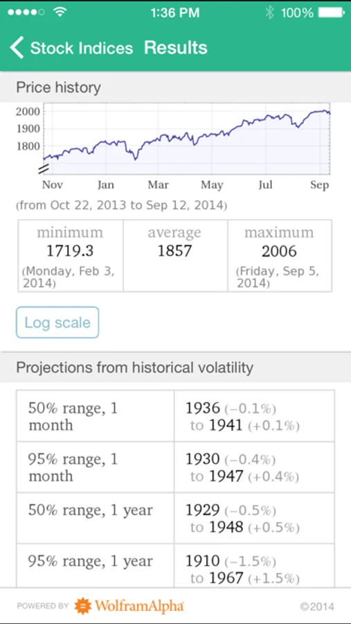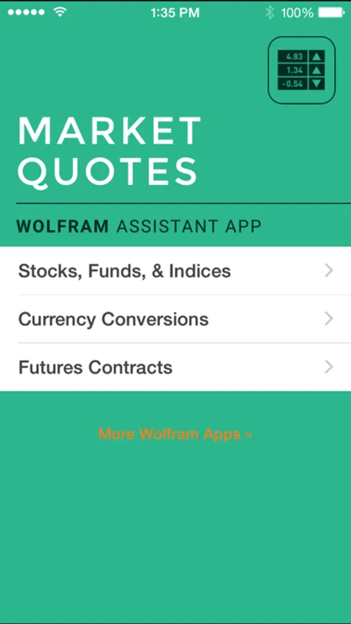 The Wolfram Market Quotes Assistant App draws on the computational power of Wolfram|Alpha's supercomputers over a 3G, 4G, or Wi-Fi connection.
