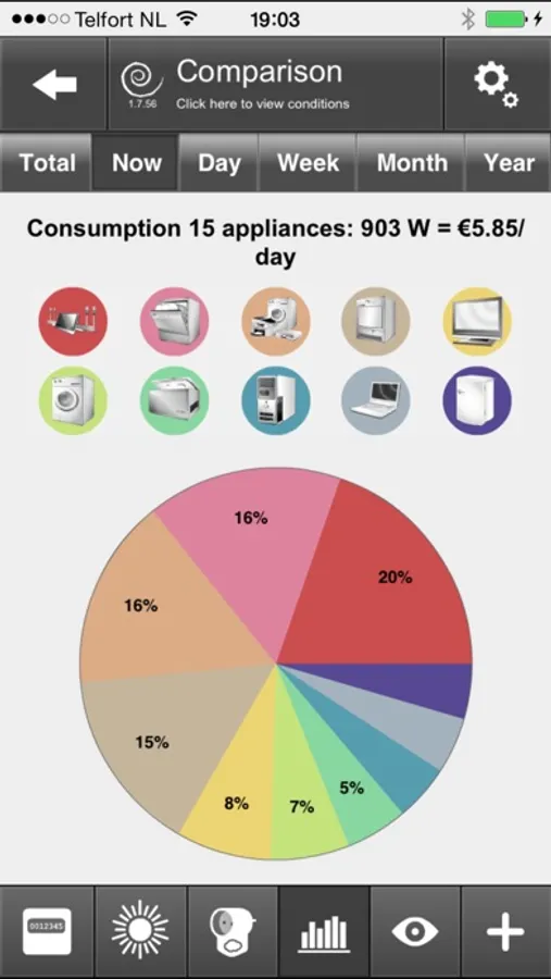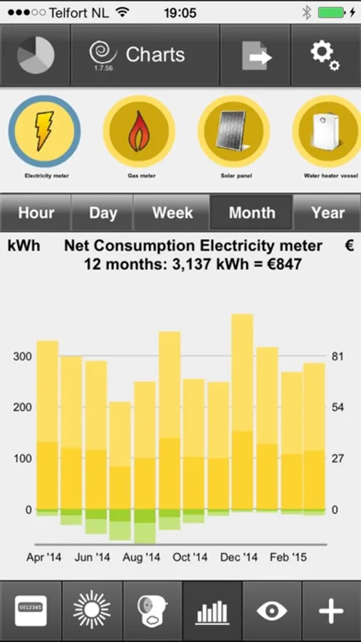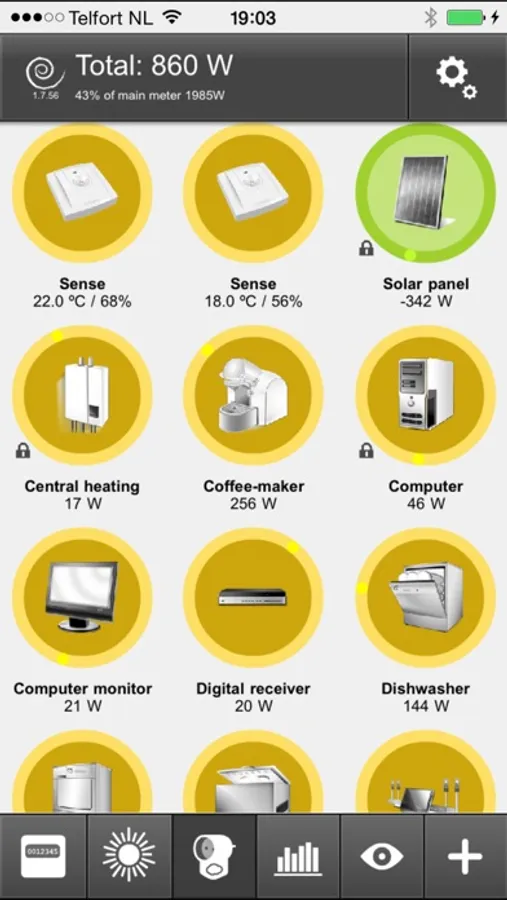 This app can be used with the Plugwise Smile P1 (and a smart meter with a P1 port) and/or the Plugwise Stretch 2.0. With the Smile P1, on your smartphone, tablet or PC it’s easy to access current information about your total consumption, both electricity and gas. With the Stretch 2.0 you have an insight into the energy consumption per device or appliance, and with a click on the button on your smartphone, tablet or PC you can switch devices/appliances on or off. With the Plugwise subscription you also have access to your energy consumption even when you are not at home. Based on your current consumption, a forecast of your yearly bill is shown, so that you know what’s involved and can take steps in good time to prevent high energy charges. This app also shows the production and net yield of your solar panels or micro-cogeneration unit if a Plugwise Circle or Stealth has been connected to them.