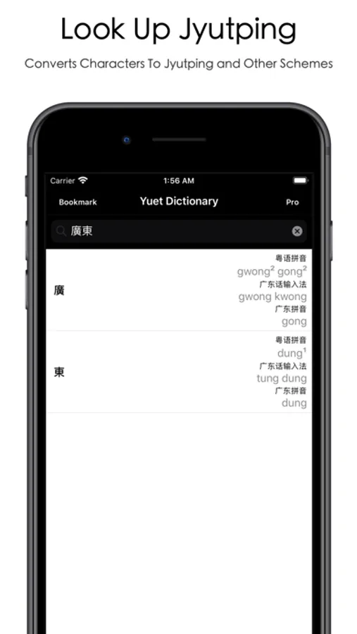 ◦ You search the pronunciation by character, and vice versa.