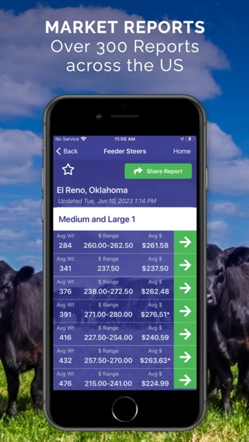 Cattle Market Mobile is an app designed to help cattle producers monitor current auction prices across the United States. This app displays reports produced by the USDA's Agricultural Marketing Service and reports composed by local livestock markets. In addition to market reports, users can also view commodity futures pricing.