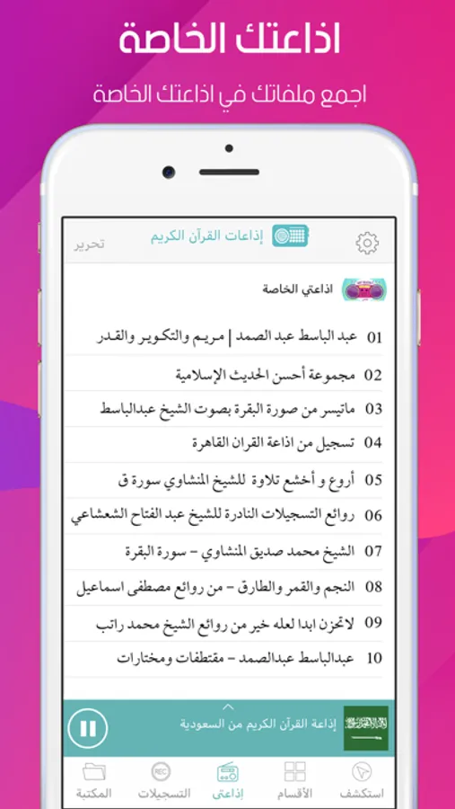 ◉ التطبيق الوحيد الذي يحتوي على اذاعات القران من السعودية والقاهرة والبحرين والكويت والامارات وقطر وفلسطين .