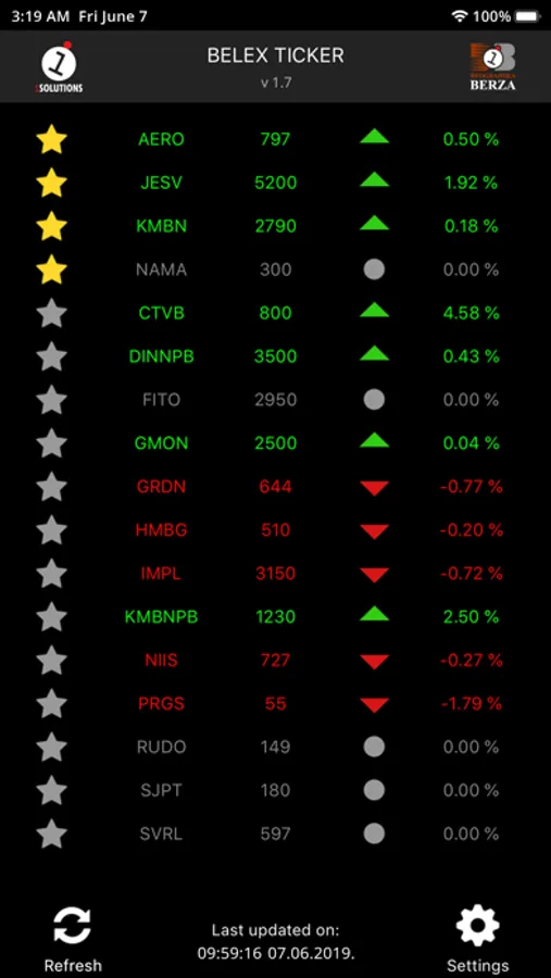 Belgrade Exchange Ticker application.