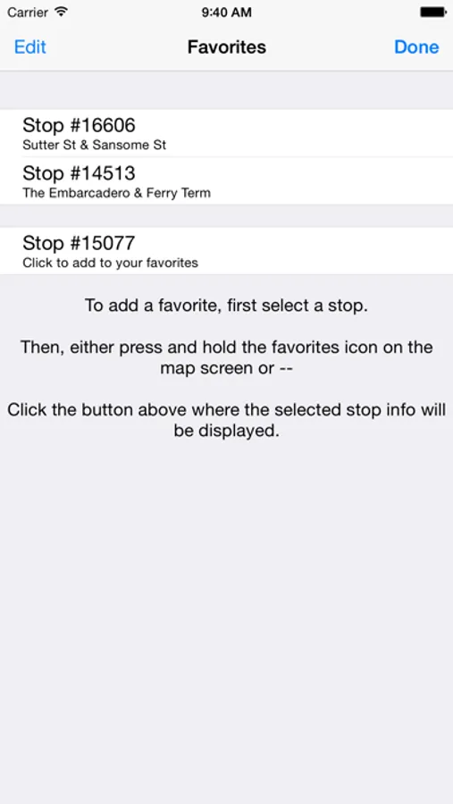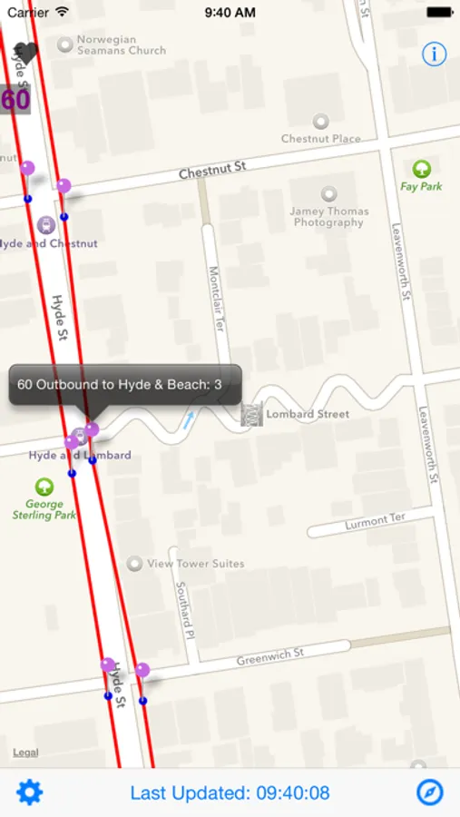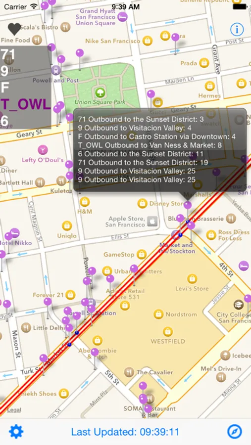 A simple, but straightforward, location based application that identifies San Francisco bus stops with next bus predictions. Location can be determined by location services, or by your own map navigation. View bus routes, save favorite stops, and see system-wide notifications.