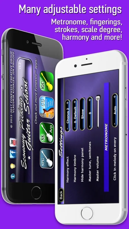 Economy picking (aka Sweep Picking) is a whole new world of unique possibilities and technical achievements on a guitar. It is hard to imagine a guitarist, who would not want to achieve a technical perfection :) . EP gives you an ability to reach the shortest way of mastering the secrets of performing art! Fonexsis integrates all existing licks of EP in one single application for you!