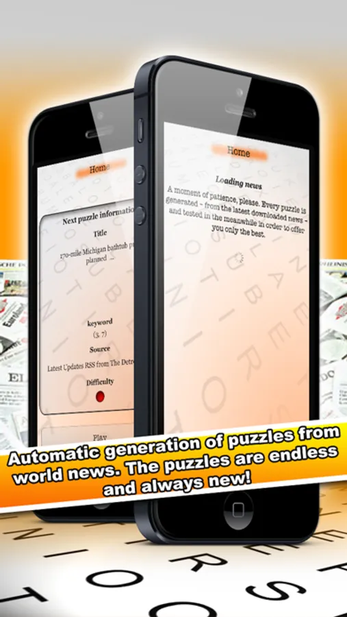 With "iCruciPuzzle 2" you can play forever! The puzzles will be generated directly from the latest news of the most important newspapers in the world.