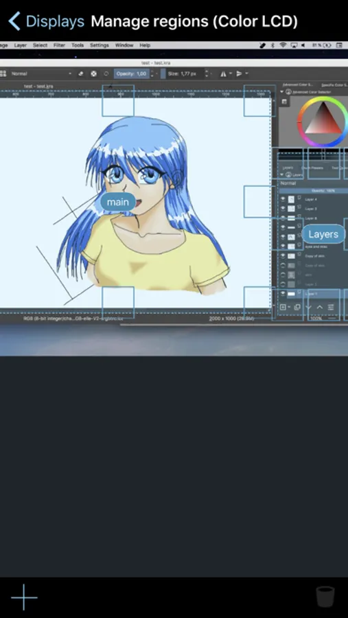 It is also possible to connect multiple iOS devices simultaneously on the same computer. Each device can display a screen or a region: very handy if you want to display the picture you’re working with on your iPad and simultaneously the photoshop tools palette on your iPhone !