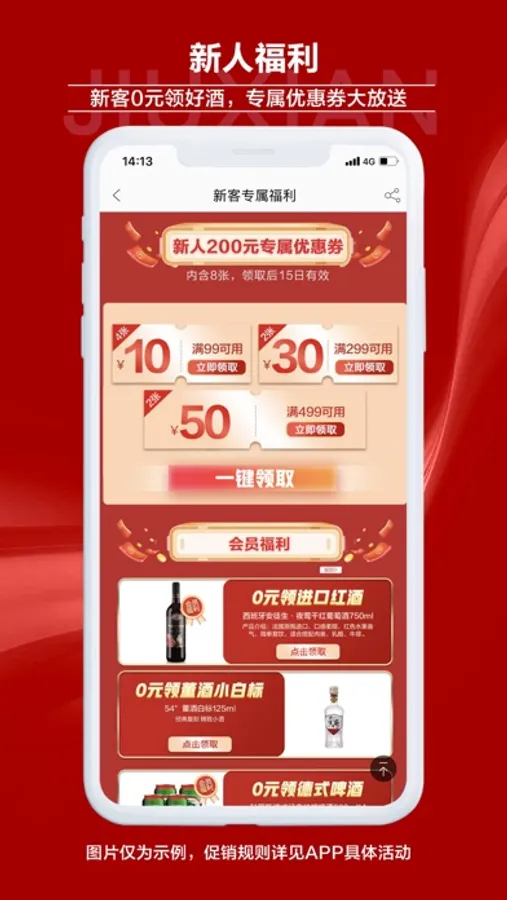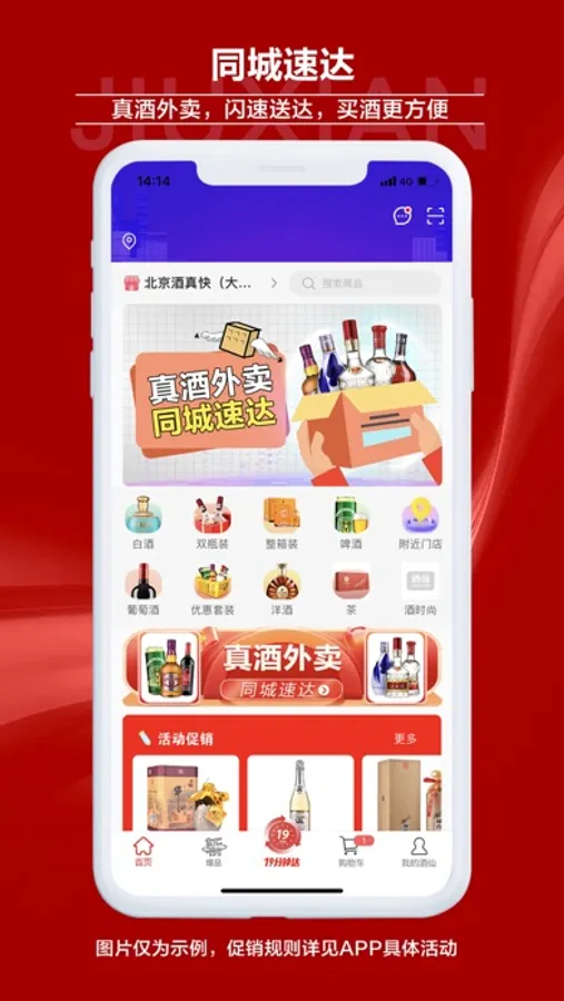 3、一键选酒:热卖好酒、名优白酒、红酒直采、喜宴用酒。