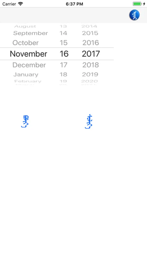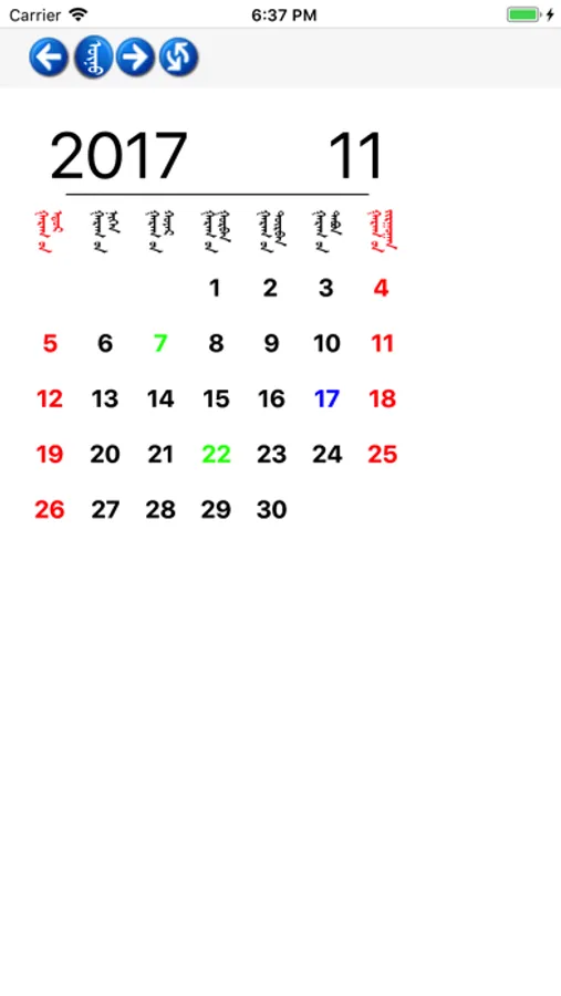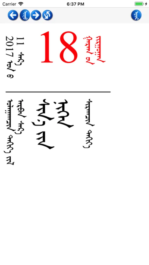 1. Display one day calendar with Traditional Mongolian.