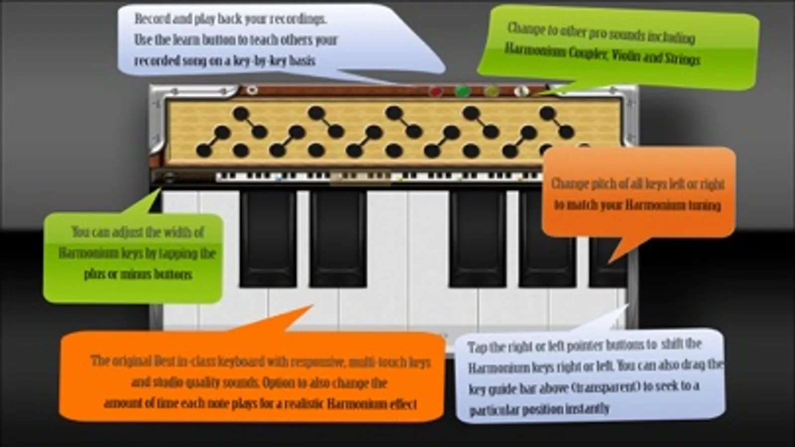 NOTE: This app has both: 1. A free version that supports basic playback and is intended for users to try out the Harmonium and 2. An in-app pro upgrade option that unlocks the full feature set.