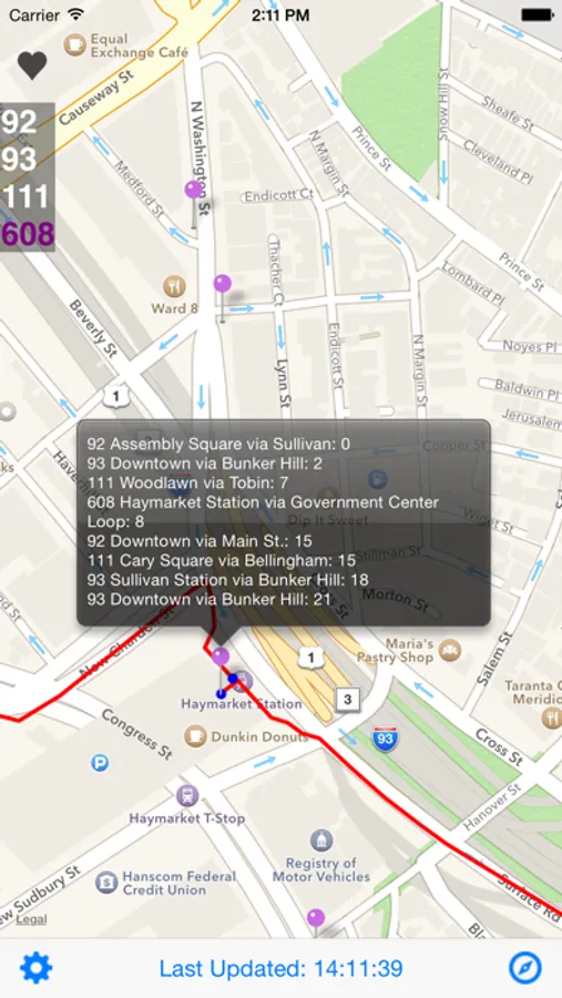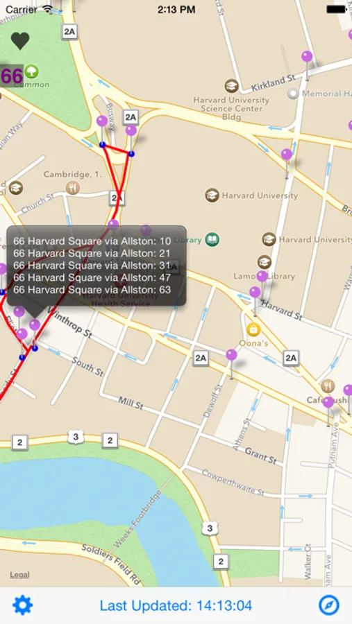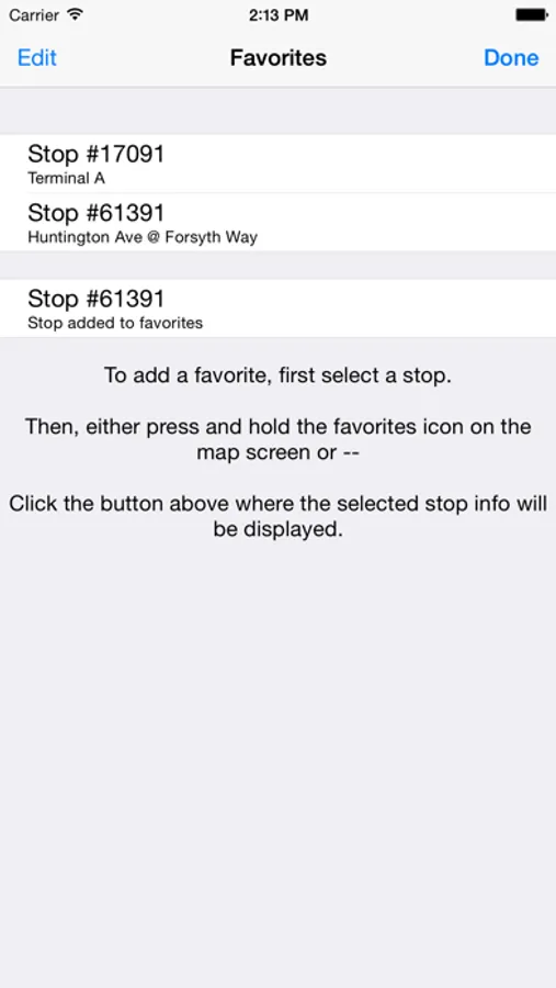 A simple, but straightforward, location based application that identifies MBTA bus stops with next bus predictions. Location can be determined by location services, or by your own map navigation. View routes, save favorite stops, and see system-wide notification.