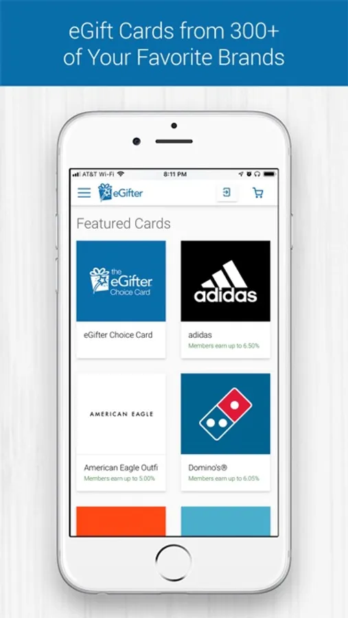 Login with Facebook, Google or Amazon, or register with an email address to get access to all the member benefits. Buy eGift Cards and access your eGifter Wallet from the app, or on the web from any device.