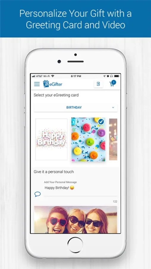 Give personalized eGift Cards for any occasion. Choose a recipient from you address book, add an animated eGreeting card and a message, and even a photo from your gallery. Send via email or SMS. The perfect last-minute gift!