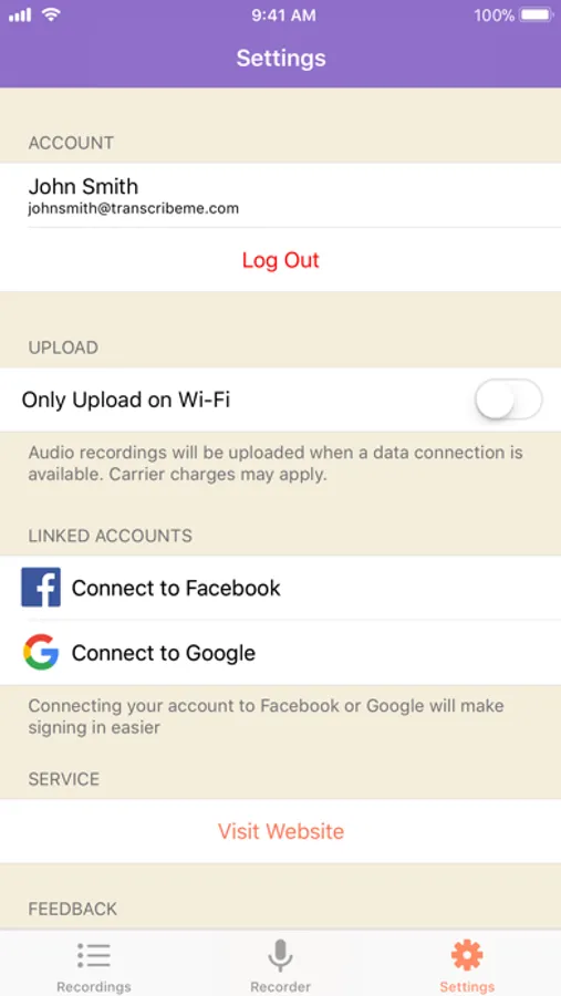 • Import recordings into TranscribeMe from other applications like Voice Memos or Dropbox.