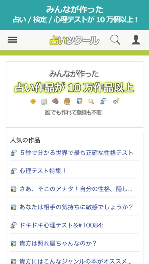 iPhoneで10万個以上の占い&小説&診断を見れる&作成できるアプリケーションです。