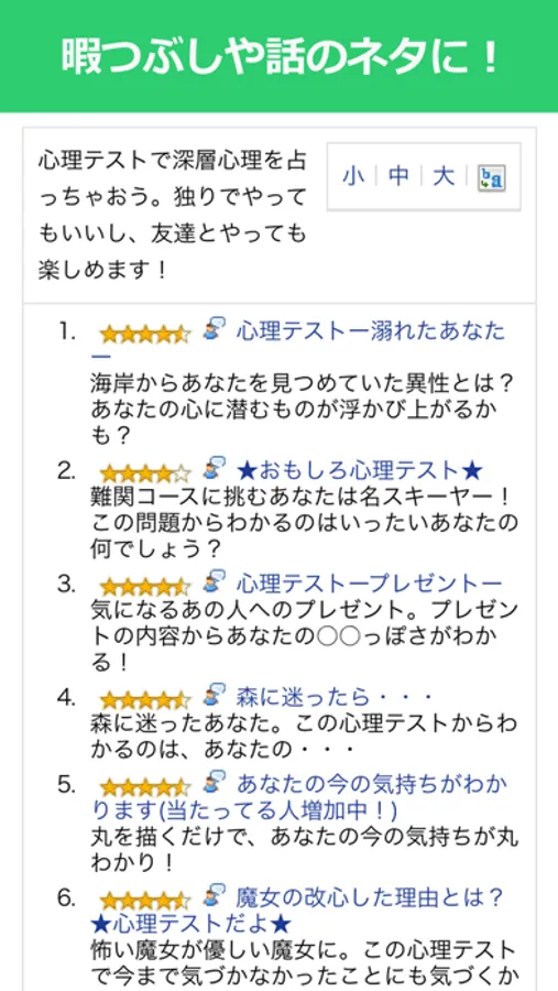 占い、小説、診断などがとにかく沢山公開されており、ご利用者様の手によって日々追加されていっています。