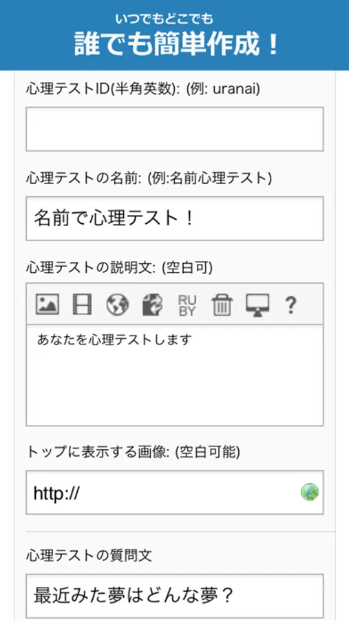 面倒なID登録不要! 必要な項目に入力していけば、誰でもすぐに1分程で作れます。