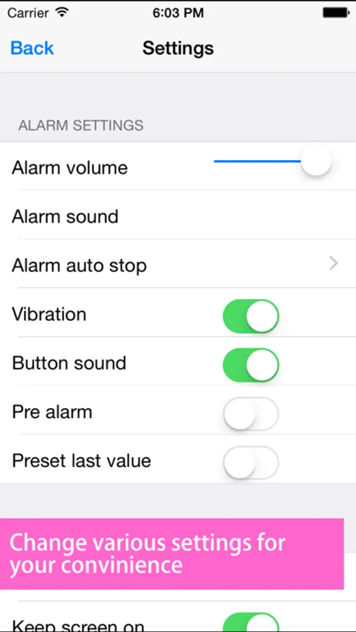 The easy to read digital panel and the easy to push buttons are basic but are the most important things about this kitchen timer. We have tried to improve the usability of the digital panel and buttons. Furthermore, in order to offer more convenience the settings allow you to adjust sound volume, vibration, and the pre-alarm which sounds five minutes before the count reaches zero.