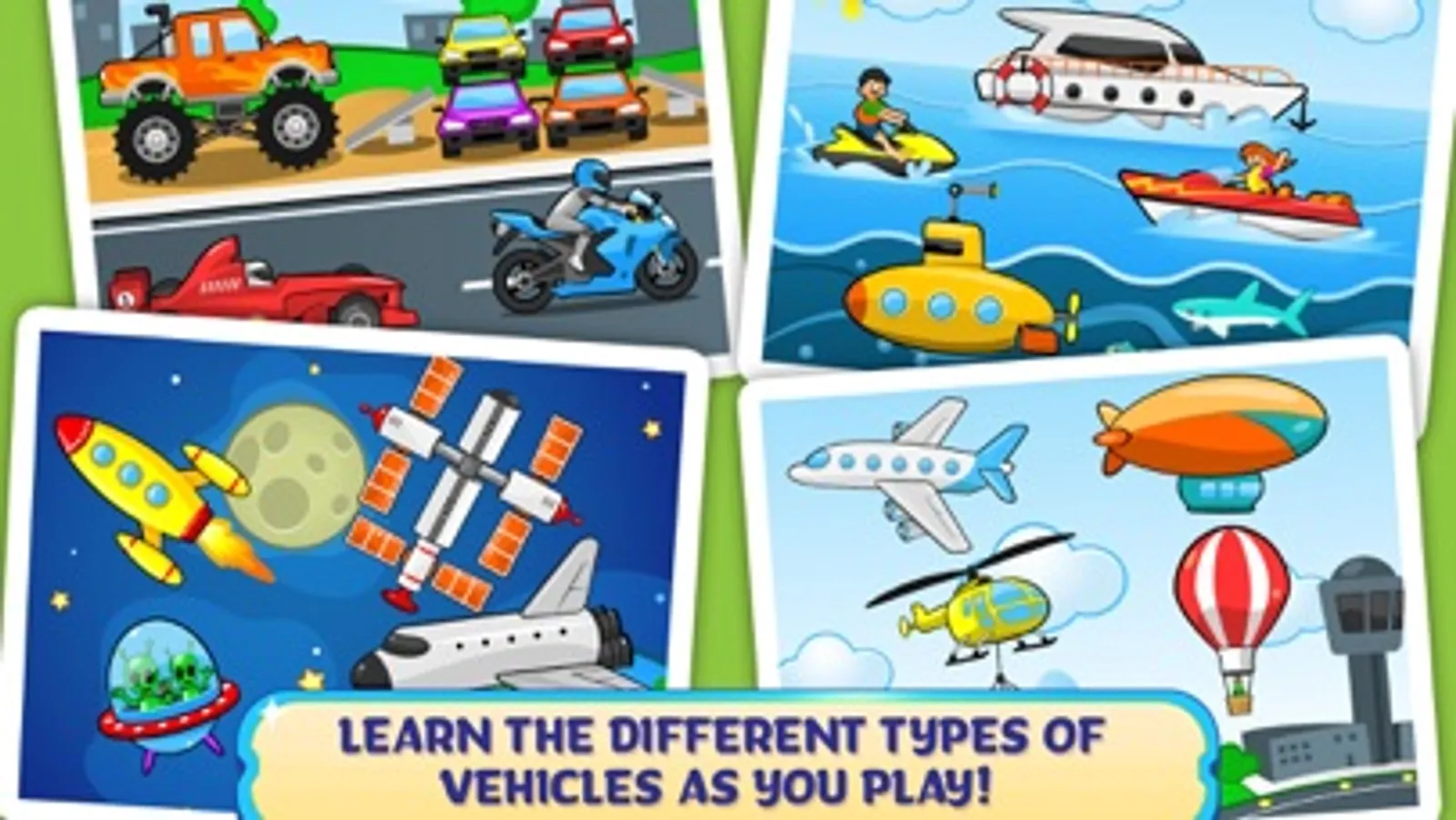 Young kids love vehicles and things that fly and parents love smart games. From planes and trucks to motorcycles and rocket ships, the My Vehicle Universe app brings the excitement and passion kids have for transportation into a fun educational game. Young children can learn to recognize dozens of vehicles from construction trucks and buses to bulldozers and taxi cabs. We provide a full universe of vehicles - 8 unique categories - and integrate memory games and shapes and sizes into an action-packed app.