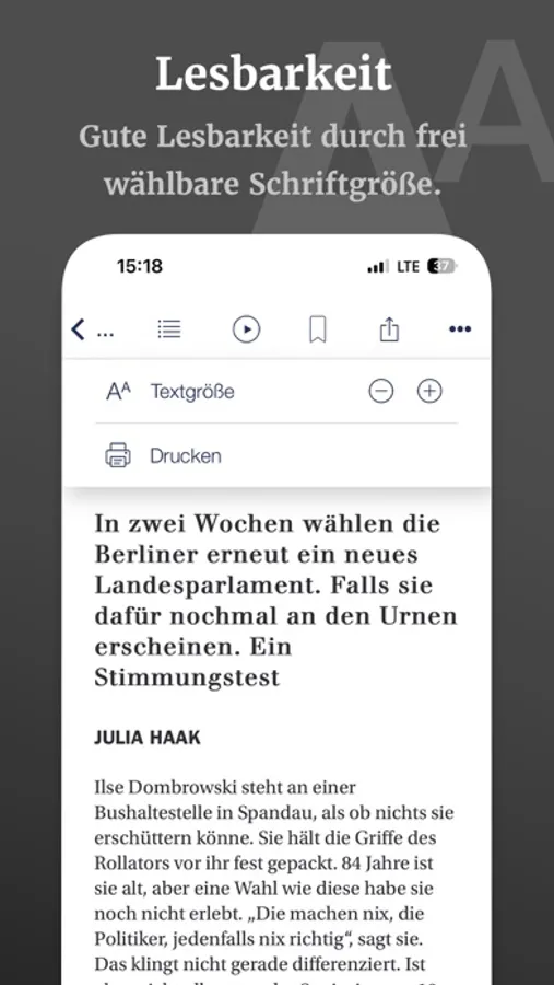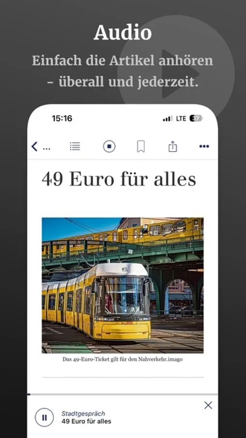 • Audiofunktionalität: Lassen Sie sich jeden Artikel in der Ausgabe komfortabel vorlesen, auch während Sie weiterstöbern.