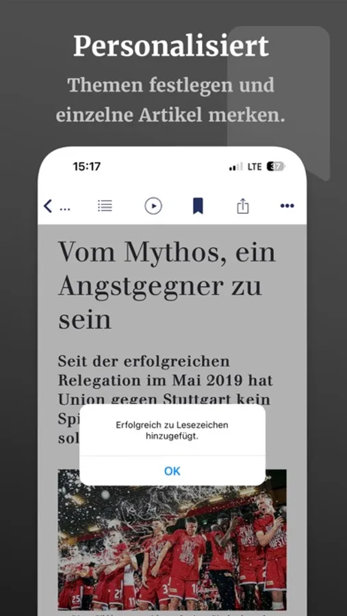 • Lesezeichen: Finden Sie ganz einfach zu Ihren markierten Stellen in der App zurück.