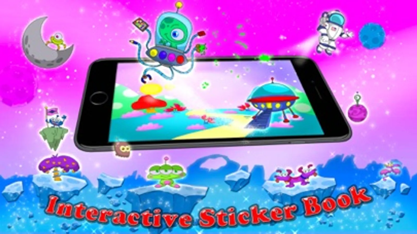 > Sticker Book - Interact with the HD illustrated monsters on screen while you can finger paint with colors and fill area with paint buckets.