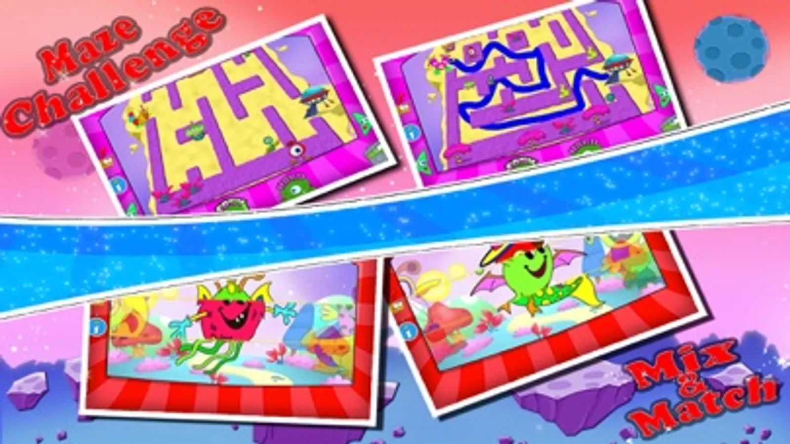 > Mix and Match - The monsters got all mixed up, help match the parts and put the colorful monsters back together.
