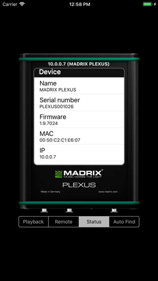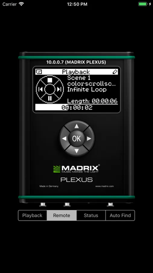 Simply connect the MADRIX PLEXUS to your Wi-Fi network. Connect your iPhone, iPod touch, or iPad to the same Wi-Fi and you will be able to control the unit remotely.