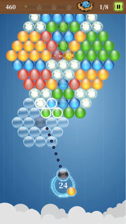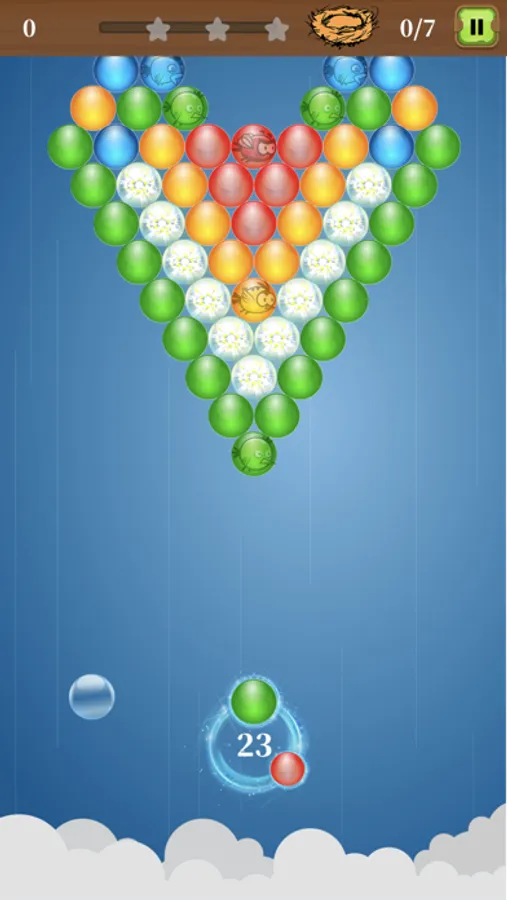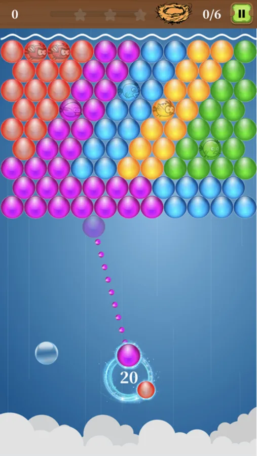 The goal of each puzzle is to save trapped birds by bursting bubbles