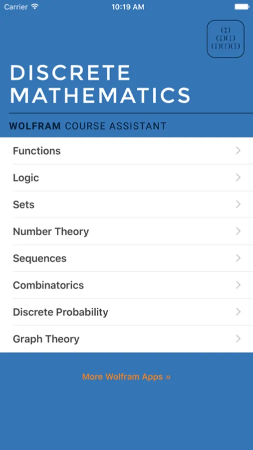 Taking discrete mathematics? Then you need the Wolfram Discrete Mathematics Course Assistant. This app for discrete math—from the world leader in math software—will help you work through your homework problems, ace your tests, and learn discrete math concepts. The Discrete Mathematics Course Assistant solves your specific discrete math problems on the fly, providing answers to a broad range of subjects.