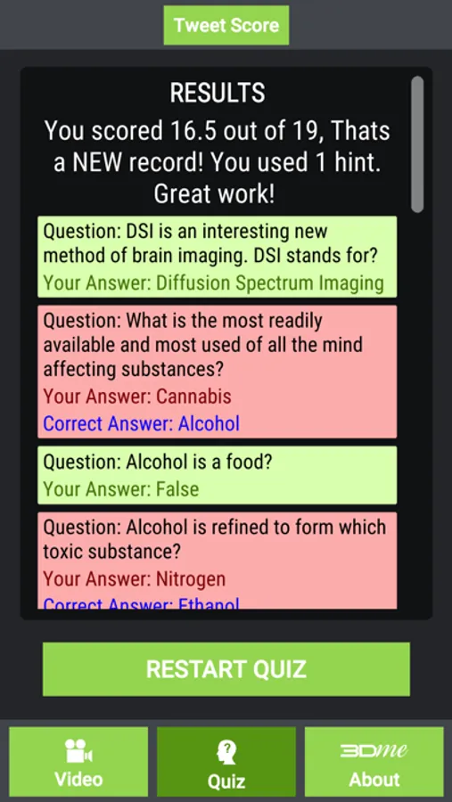 After viewing the video, to assist your understanding of this topic, you can complete a Quiz consisting of 20 multiple choice questions. The Quiz includes an optional "Hint" button which enables you to review the portion of the video related to the question. However if a "Hint" is used to answer the question, the maximum score out of 1 for a correct answer will be 0.5. You also have the option to Tweet your results to others.