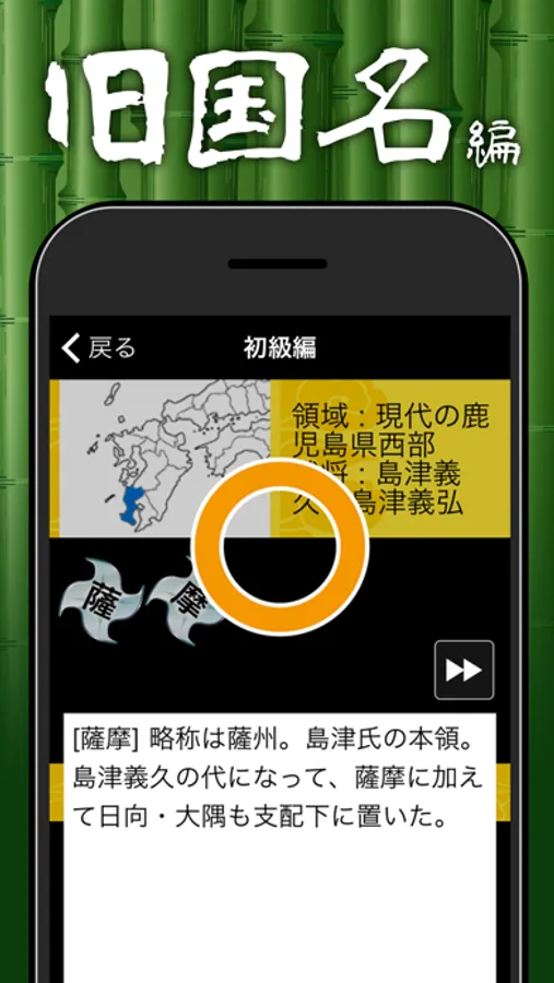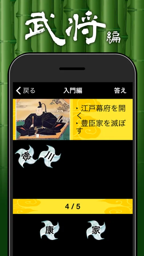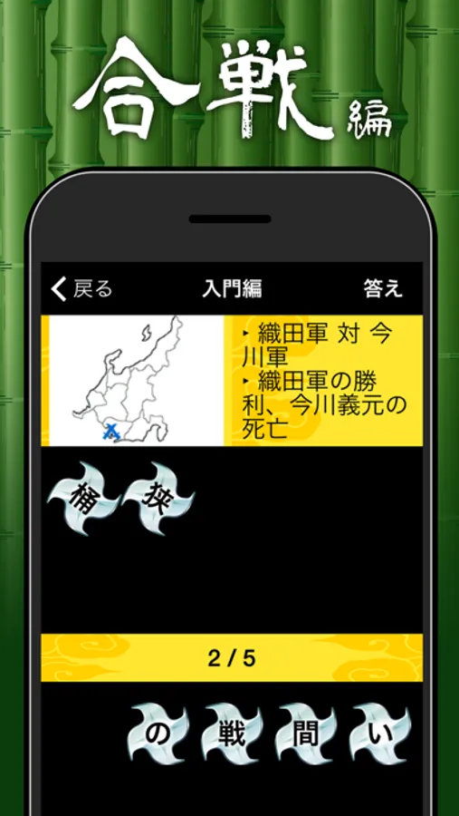 本アプリには、戦国武将、合戦、城、旧国名に関する歴史クイズを収録。目指せ全問制覇!