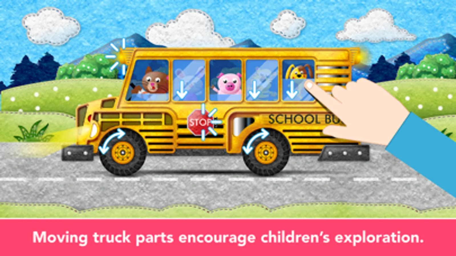 A bright collection of fun puzzles devoted to all curious preschool children who love trucks and vehicles. The app develops children’s logic and fine-motor skills as children situate puzzle pieces by shape within a picture to construct a vehicle. Each vehicle has moving parts which children can explore once they assemble the vehicle. Children have a ton of fun as they engage in constructive play with these 14 fabulous animated trucks and listen to their fascinating sounds!