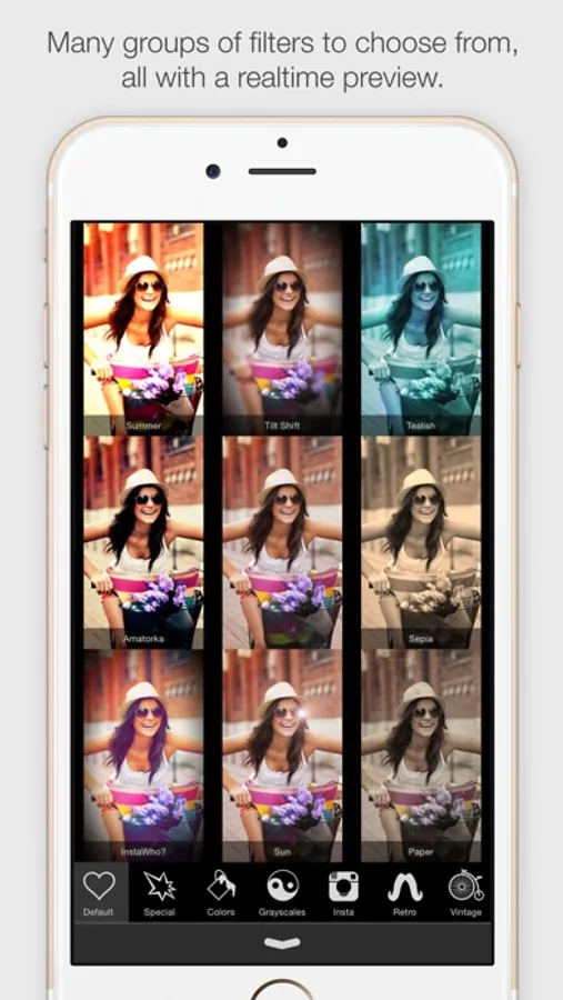 • Live Effects and filters for photo AND video, such as Toon, Pixellate, Sepia, Sketch,Tilt Shift and many more