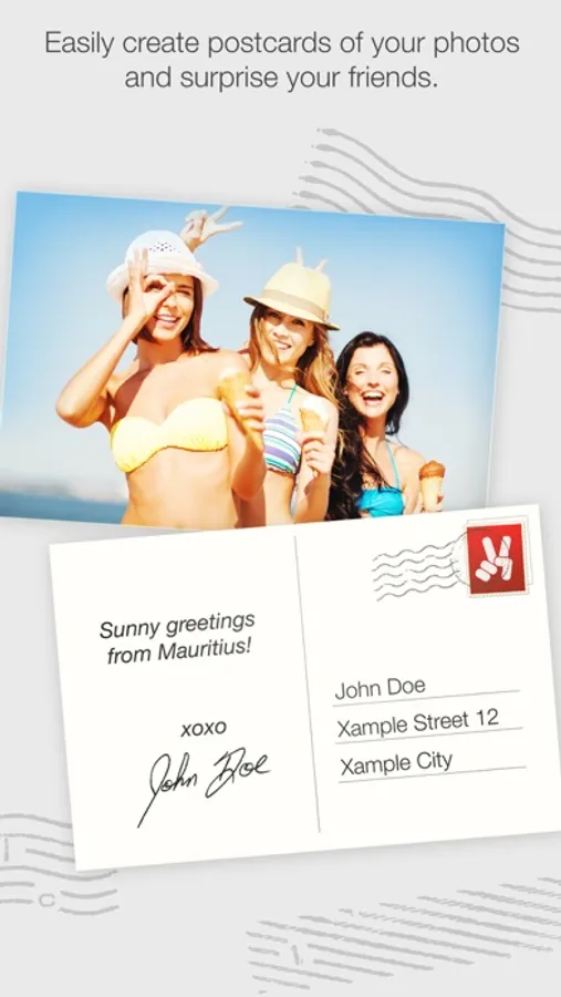 Highlight: Send your photo as a real printed postcard! Simply download app and select between LIVE fantastic effects - whether photo or video. You can see the selected effect or filter on your screen. Party, romance or Old School. For each event the right effect is present.