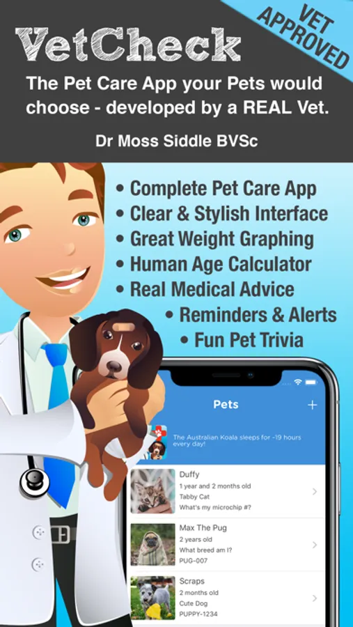 Developed by a real Vet, you can be assured that the information is correct, relevant and useful in helping you care for your pets.