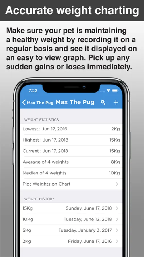 • New larger and easier to read, fully interactive graphing features and stats about your pet's weight.