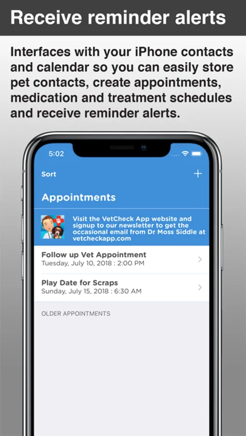 Vet Check is the perfect app to keep track and store all of your Pet information with fun features like human age calculation for your Cat, Horse or Dog. Now, all that important pet information, like Vaccination history, medication reminders, pet-related appointments & detailed info about your pet's medical conditions is in your pocket, making this the perfect veterinarian produced app out there.