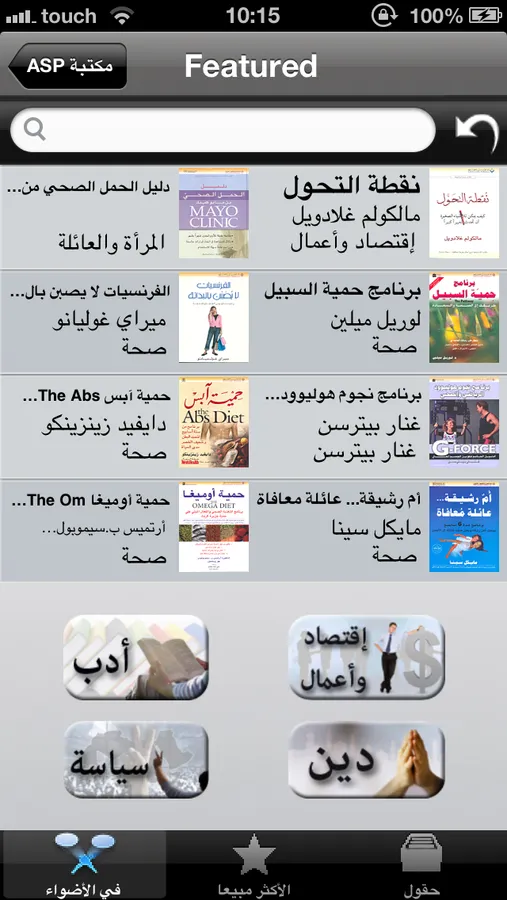 إذا كنت راغباً في تجربة البرنامج اضغط على رمز الكتب المجانيّة في أسفل الشّاشة إلى اليمين، واختر الكتاب الذي ترغب في قراءته، وتمتّع بمطالعته.