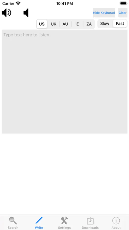 - Select the English voice accent from USA (American), UK (British), Australia (Australian), South Africa (South African) and Ireland (Irish).